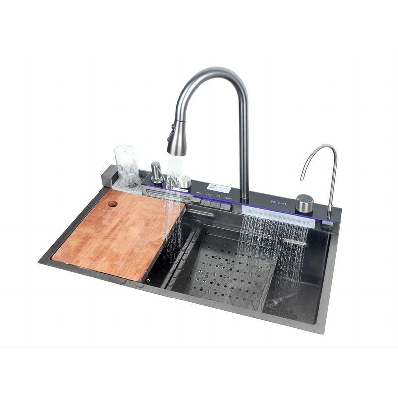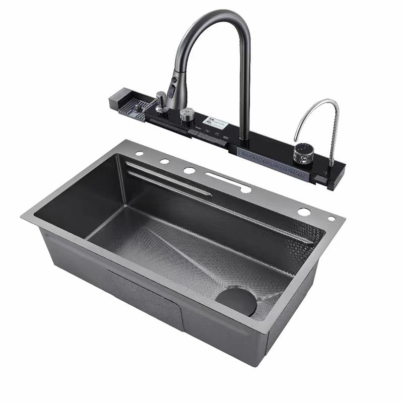 2024 新趋势 Tiktok 智能厨房水槽带瀑布数码钢琴键 304 不锈钢多功能厨房水槽 7546 货号:MB 5B-7546