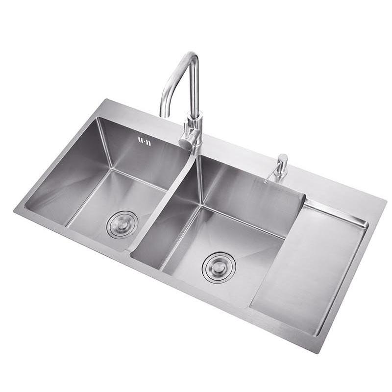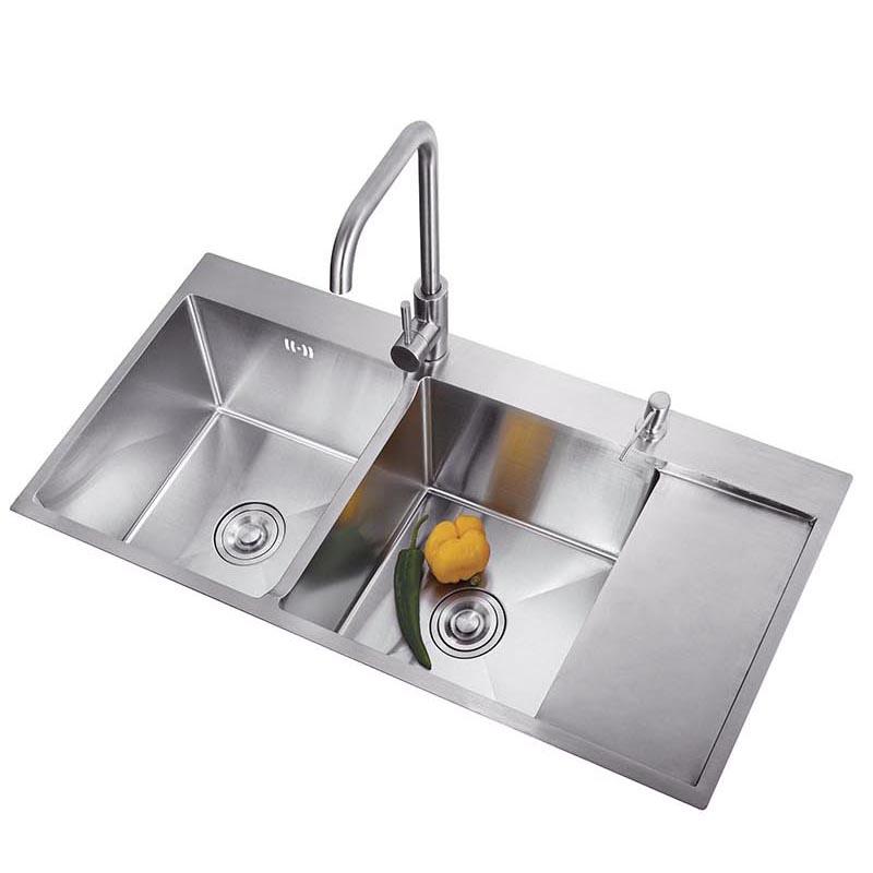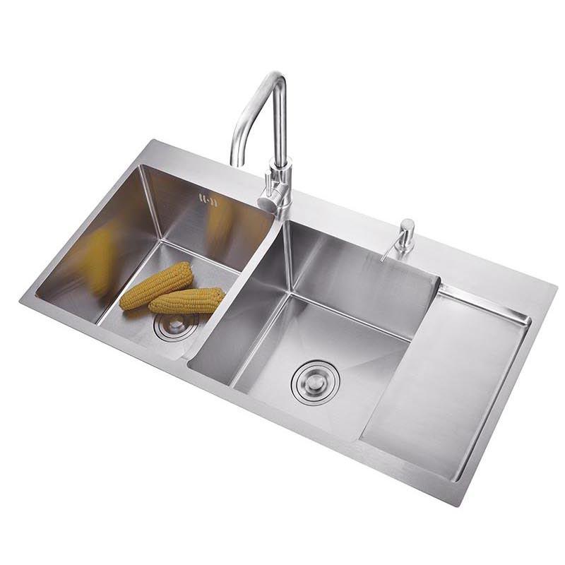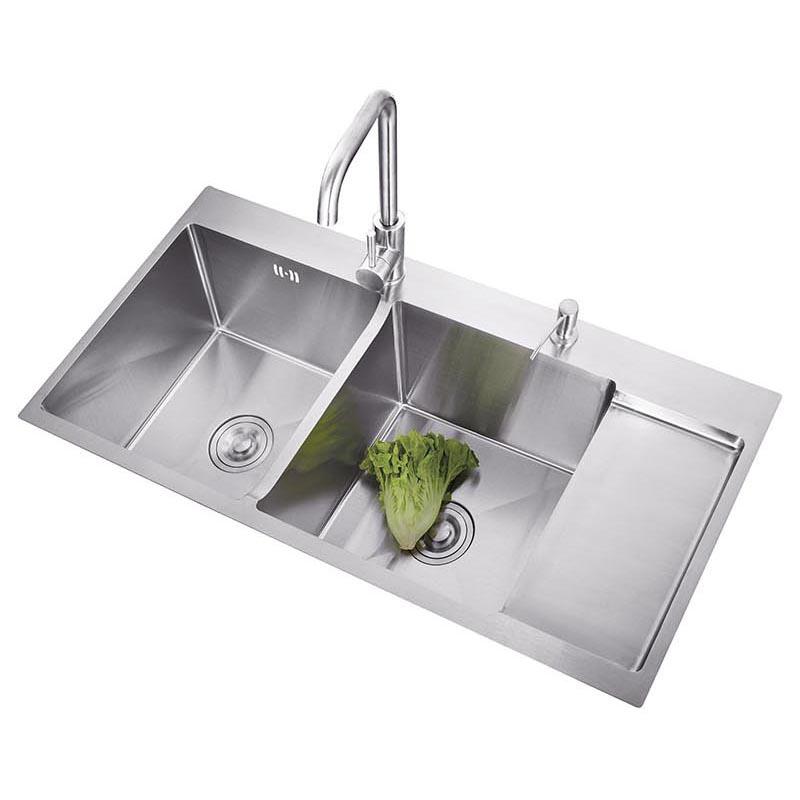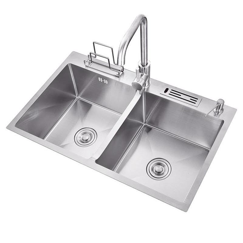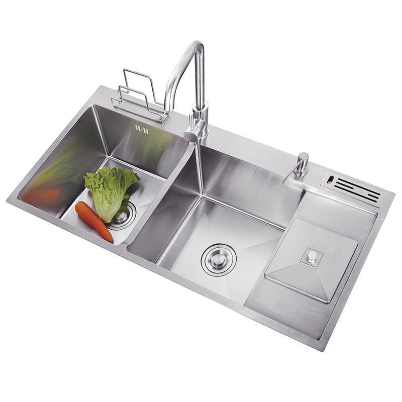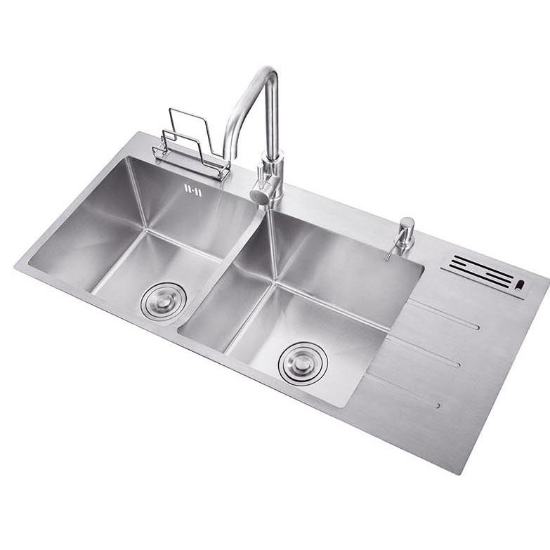 越南风格 SUS 201 304 不锈钢小型双层厨房水槽,带垃圾桶和刀架 HM-DB S LD DBO-10048-KH CBR WBM