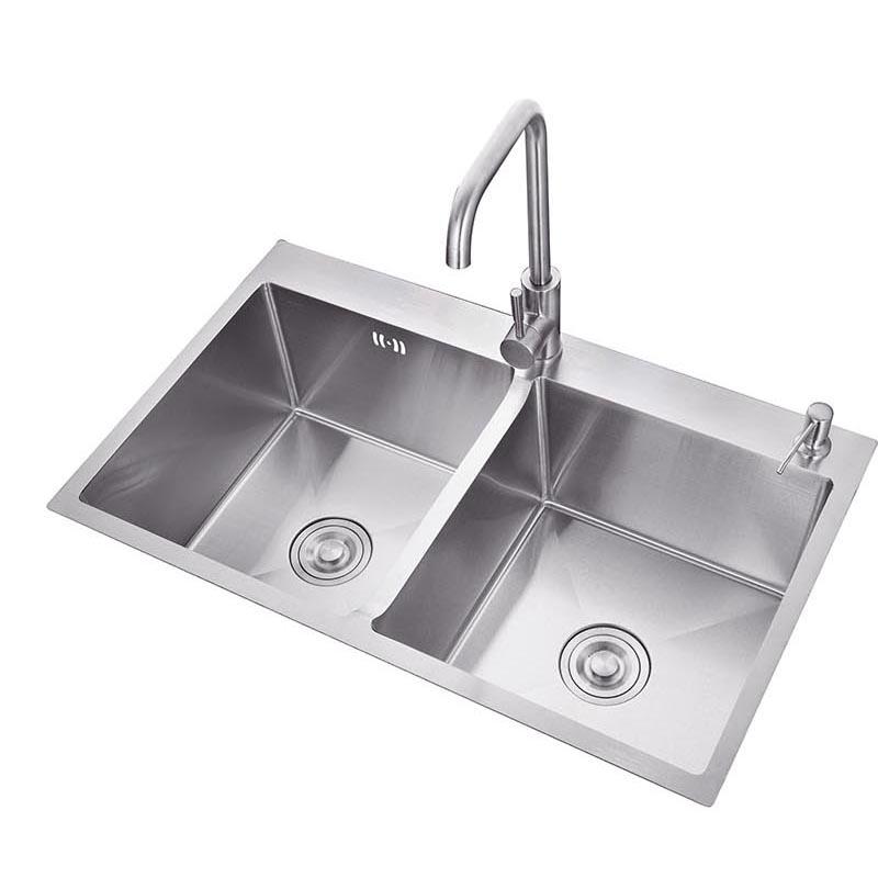 新设计耐用纳米银手工双碗不锈钢防锈方形厨房台下水槽 8245 HM-DB S E LD-8245