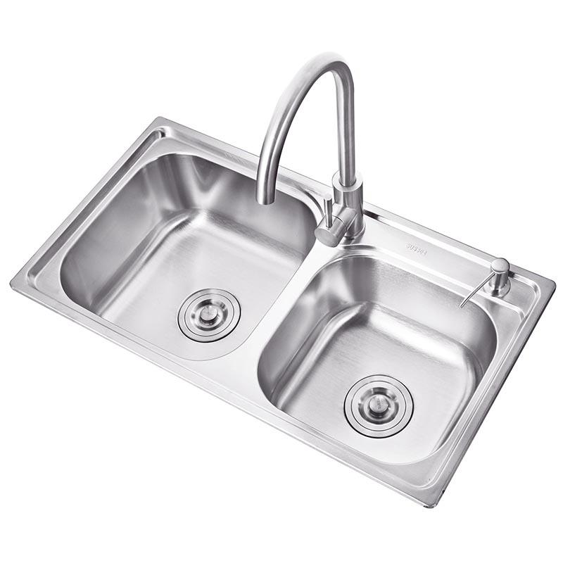 中国工厂价格双碗不锈钢厨房水槽厨房台面水槽 7843 MM-DB S E SLO-7843